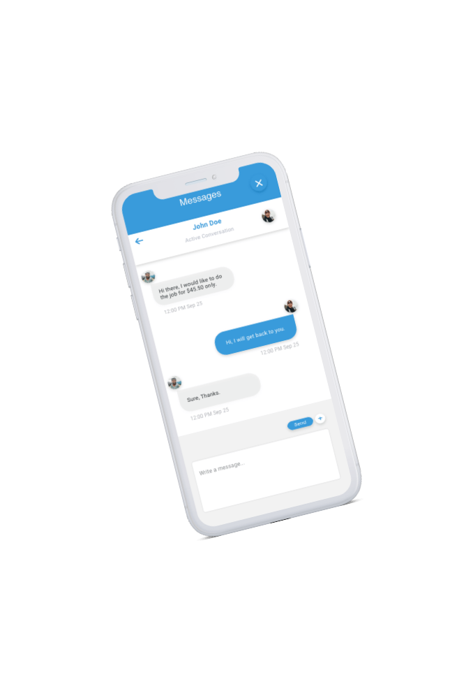 Try it Free NowOur in app messaging is available as soon as you receive your first offer on your job. This allows both parties to immediately reach out to discuss pricing, times, job details and more.